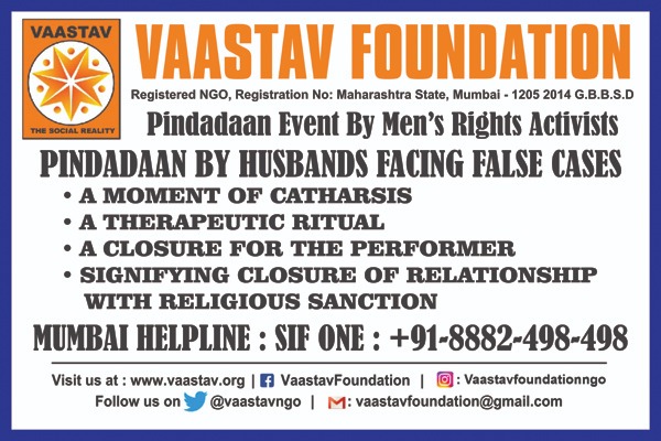 The event is scheduled on Sarva Pitru Amavasya, the final day of Shraaddh (Pitru Paksha), traditionally observed to honour departed ancestors. Vaastav Foundation has been performing this symbolic ceremony annually following a resolution passed at the 11th Annual National Men’s Right Meet of the Save Indian Family NGO network.